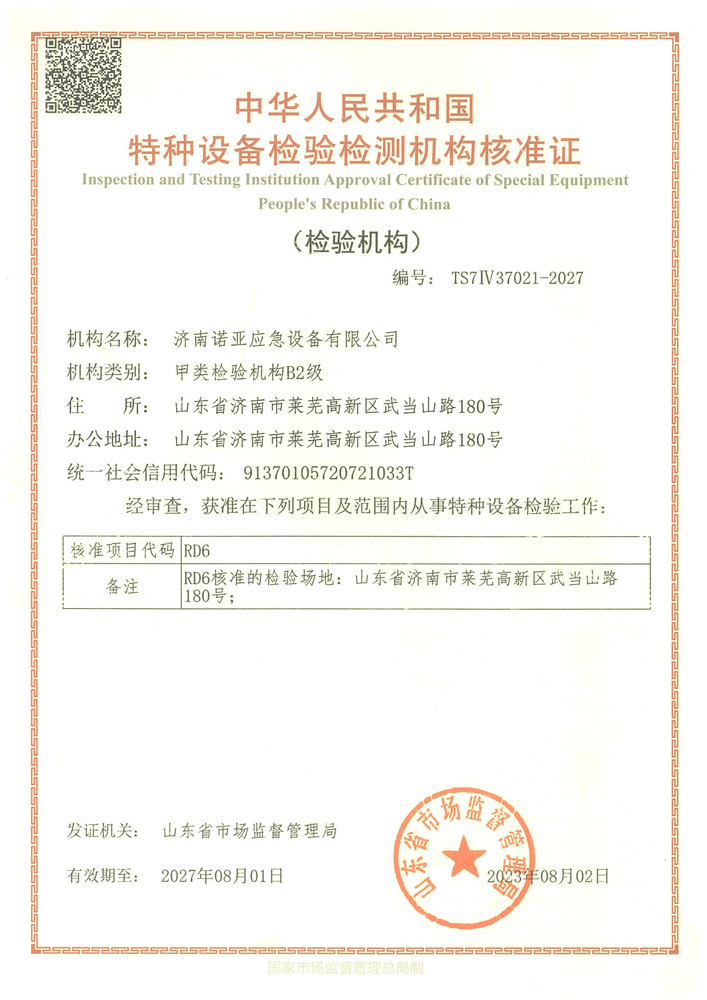 济南公海555000JC线路检测中心应急设备有限公司成立于1999年,是一家专业从事灭火设备研发、生产、销售及安装于一体的科技型制造企业。公司占地63亩,建设有4000㎡办公楼一座,生产车间14000㎡。设有气瓶检验检测线两条,拥有年检无缝气瓶30000瓶组,焊接气瓶36000瓶组的检验检测能力。瓶阀检测线一条可实现各种型号的瓶头阀强度、气密、可靠性、手动开启力、高低温实验等检验检测。全自动灌装线两条可实现对全氟己酮灭火设备及七氟丙烷灭火设备的充装及增压,拥有年50000瓶组的灌装产能。
